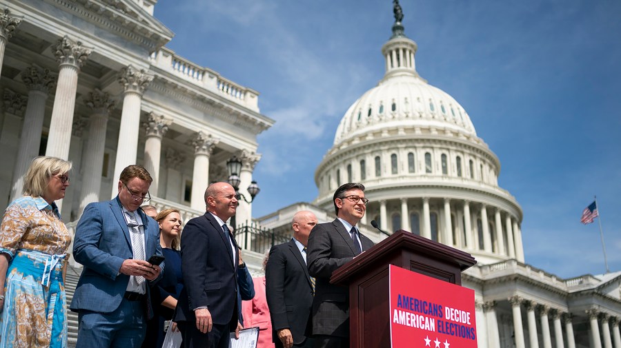 Last week, Speaker Johnson stood shoulder-to-shoulder with discredited election deniers on the steps of the Capitol — the very steps that a violent pro-Trump mob overran on Jan. 6, 2021 — and announced the introduction of an unequivocally xenophobic bill that would discourage and even bar eligible American voters from registering to vote.